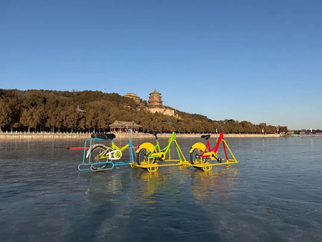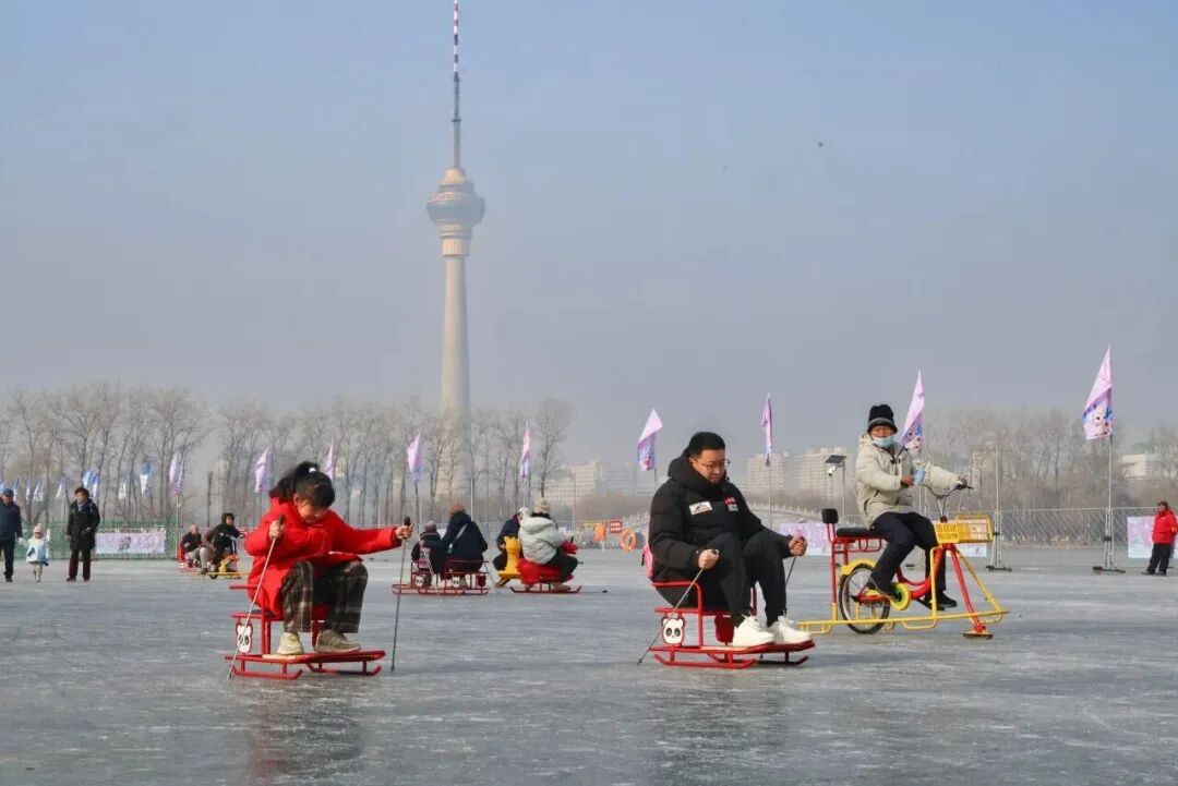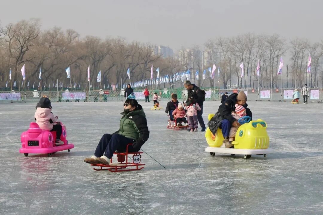 冰面上,单人冰车、双人冰车、冰上自行车等多种项目一应俱全,亲子出游、好友结伴都能找到适合自己的玩法。