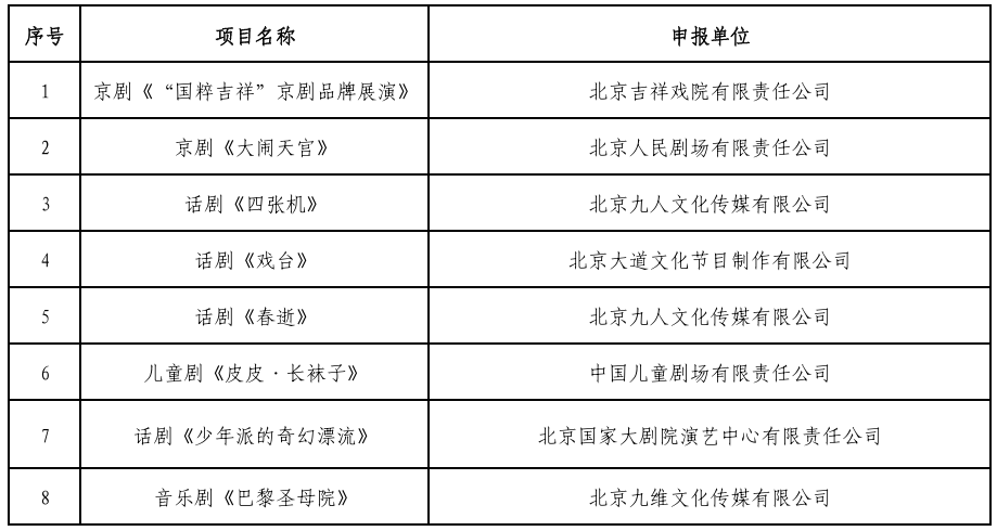 为推进演艺之都建设,根据《北京市推动演艺高质量发展支持办法》,近期已组织开展第二批次精品演出类项目征集、评审和审计工作,现将2025年第二批次拟支持项目予以公示。公示期为1月21日-1月27日,期间如有异议,请向北京市文化和旅游局反映并提供相关材料。