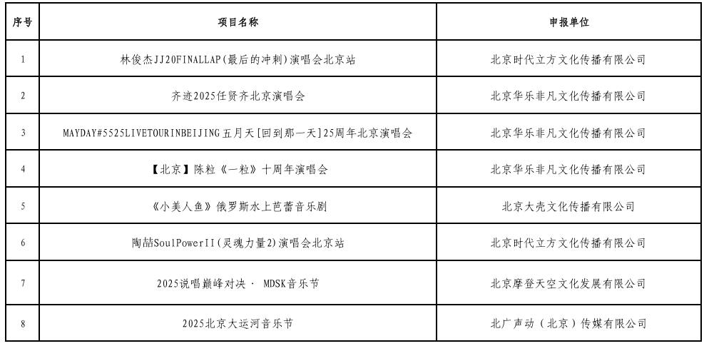附件:北京市推动演艺高质量发展支持办法(大型营业性演出类)2025年度第二、三批次拟支持项目