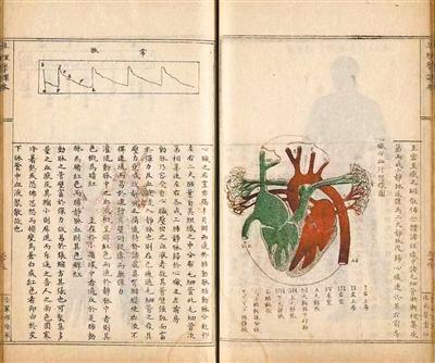 发布的普通古籍大部分为清代科学类书籍,涵盖数学、物理学、化学、测绘学、地文学、生理学、心理学等内容。这批古籍是中国印刷技术从传统向现代转型过渡的重要样本。在现场,工作人员展示了一本清光绪三十三年(1907年)石印本《生理学课本》,书中讲解血液循环的内容旁配有一张心脏彩图,虽只有红、绿两色,但肌肉与血管清晰可辨,足以起到知识启蒙的作用。