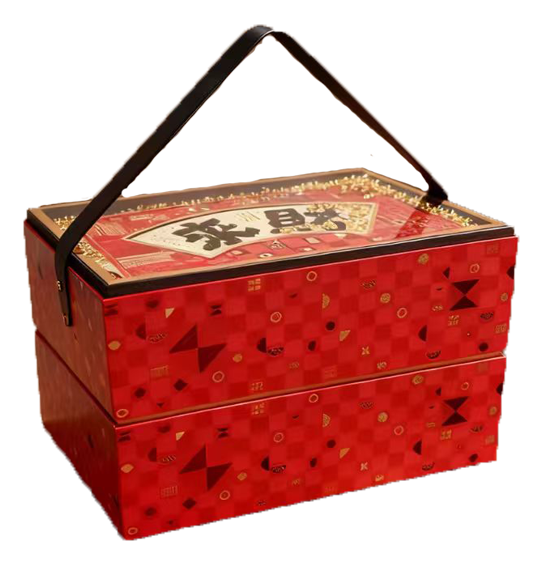 寓意新春开运礼盒以金色搭扣精巧点缀