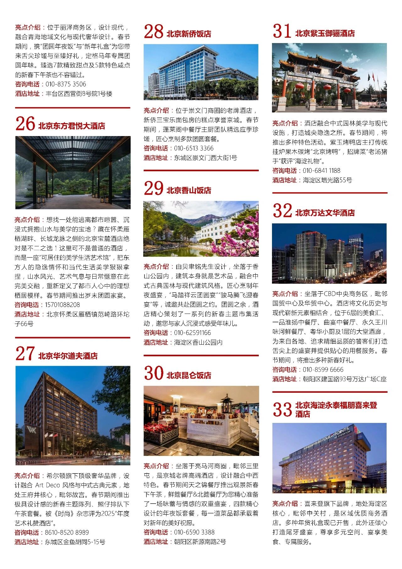 春节来北京值得推荐的70家酒店