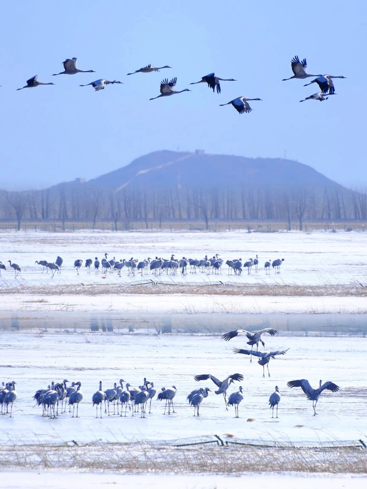 近日,北京延庆官厅水库冰封如镜,尽显北国冬韵。成群的灰鹤翩然而至,在水库周边的湿地间悠然觅食、驻足休憩,为苍茫静谧的冰湖画卷注入灵动生机。(图源:sipa图库)