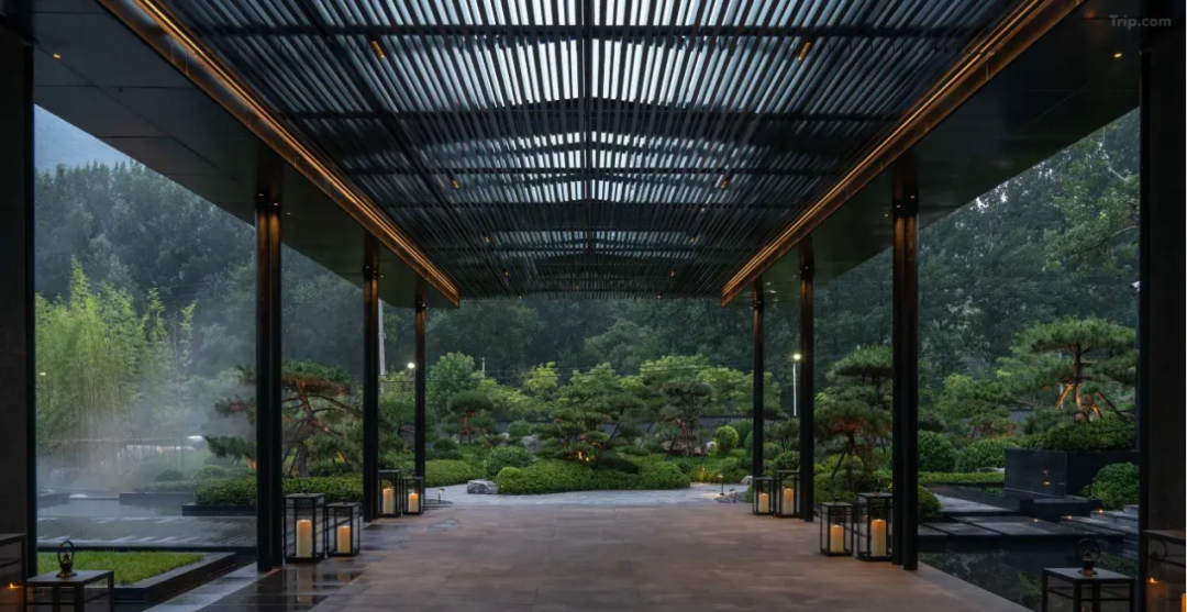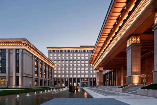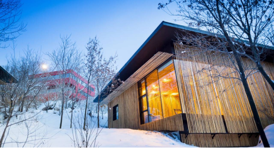 凯悦酒店典雅幽静的建筑风格设计灵感来源于延庆的自然画卷,宽敞舒适的客房分布于高低错落的建筑群中,蜿蜒的连廊将建筑连为一体。