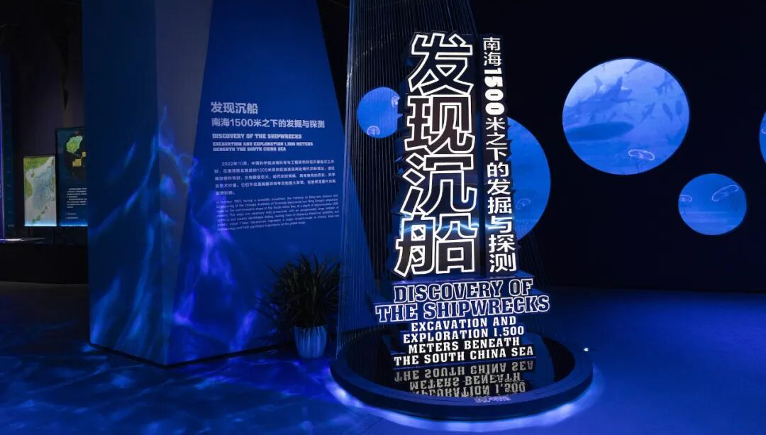 蓝色灯光在地面营造出水波粼粼的效果,展墙上的圆形“舷窗”呈现着深海考古的画面……北京大运河博物馆展厅里,377组件沉睡深海的文物向世人诉说着明代海上丝绸之路的故事。“向海而行——中国南海西北陆坡海域深海考古特展”以探索南海西北陆坡一号、二号沉船为叙事线索,通过文物展品、水下影像和考古故事,带领观众走进那段被海水封存的历史。