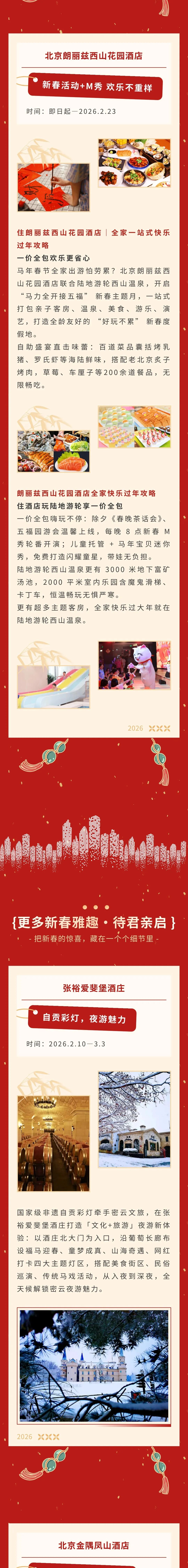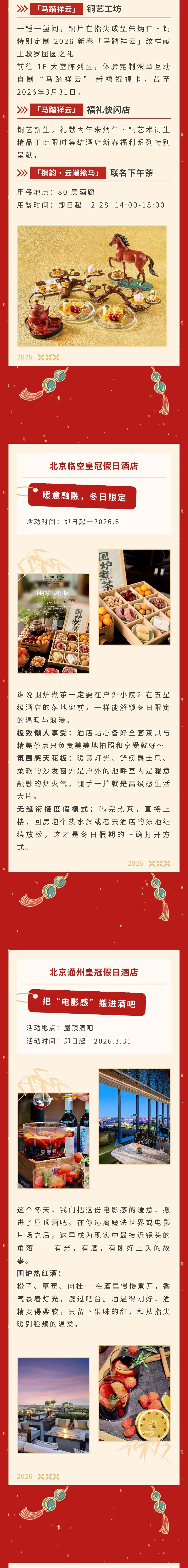 北京酒店过大年,上篇的团圆家宴还意犹未尽?别急,北京星级酒店的“年味儿大招”才刚刚开始!