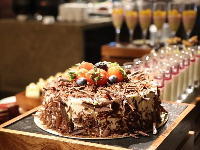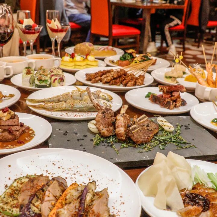 西冷牛排、牛尖峰、牛仔骨、猪排骨、牛肋条等多款烤肉美味纷呈搭配浓汤、沙拉与精致甜品,味蕾尽享多重享受更有缤纷水果、醇香面包、冰淇淋等。