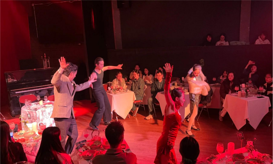 夜莺剧场打造了多部讲述胡同故事、城市历史与现代生活的创新剧目。与辰星剧社深度合作的沉浸式话剧《京月风华》,以前门胡同为背景,带来一场民国复古风格的喜剧盛宴;荒诞喜剧《杀死那个按部就班的狗》和爱情喜剧《要留青白在人间》,聚焦当代都市生活,引发了观众强烈共鸣;实验戏剧《短片剧场集:虚实未定》、全息投影沉浸式戏剧《阿芙罗地忒的考验》和百加剧团带来的沉浸悬疑喜剧《暗夜谍影》,以先锋形式为观众带来新奇观演体验。此外,夜莺剧场与网红餐饮“Zeng餐厅”达成深度合作,观众可在沉浸式RPG戏剧杀《北平404列车》和儿童魔术剧《京城有座魔法院》的观演过程中,享用主厨定制的特色菜品,体验戏剧与美食的双重享受。