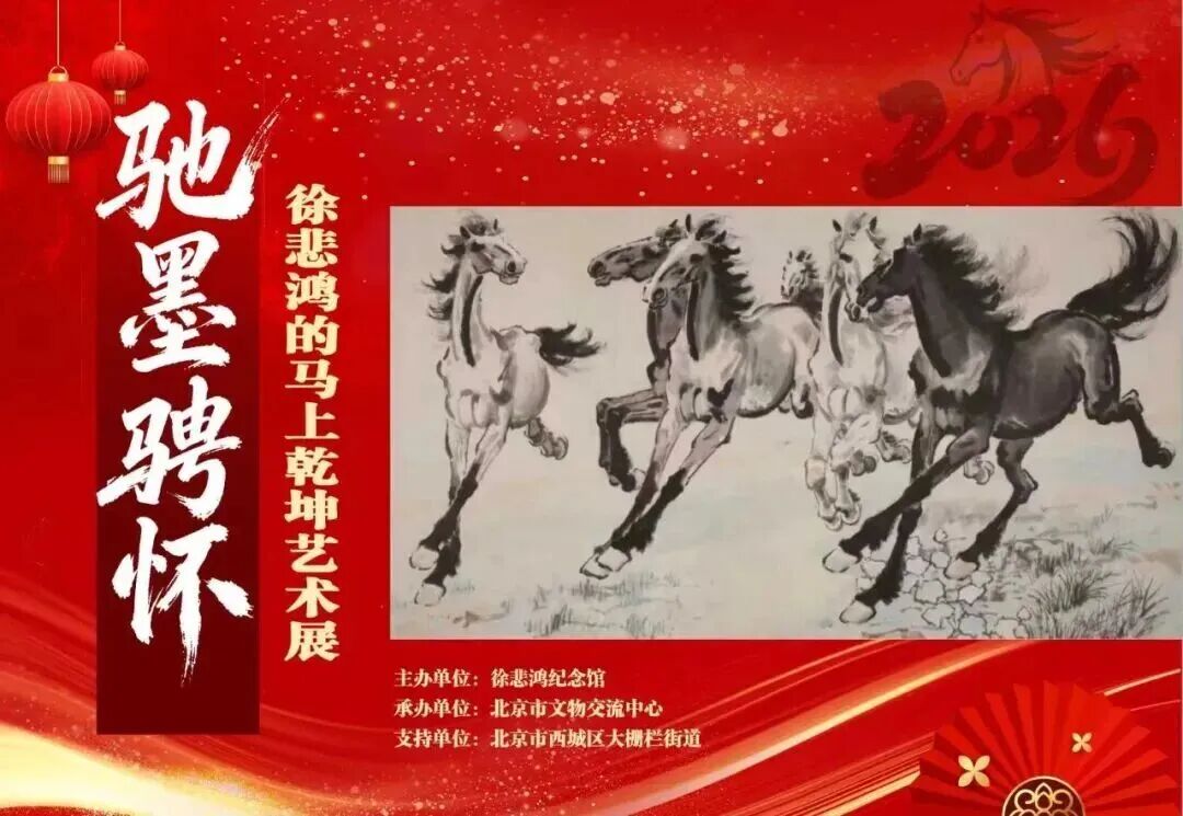 丙午马年新春到来之际,由徐悲鸿纪念馆主办,北京市文物交流中心承办的“驰墨骋怀:徐悲鸿的马上乾坤艺术展”,于2026年2月10日在北京市文物交流中心正式对外开放。