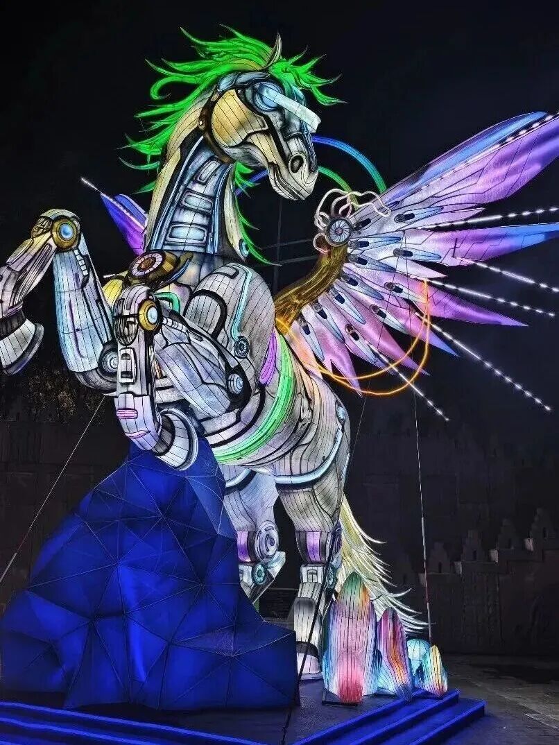 密云新春灯会嘉年华打造出超10000平方米展示空间,以2.5公里夜游步道串联四大主题区域与24组特色灯组,将马年生肖文化、新春祈福寓意与密云生态特色、城堡建筑美学深度融合。