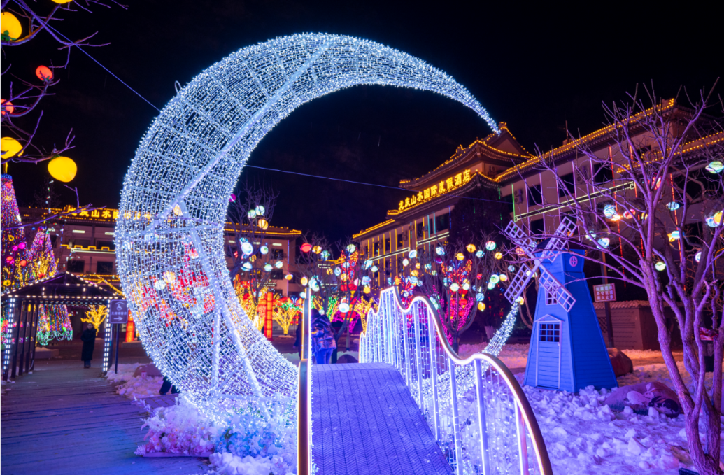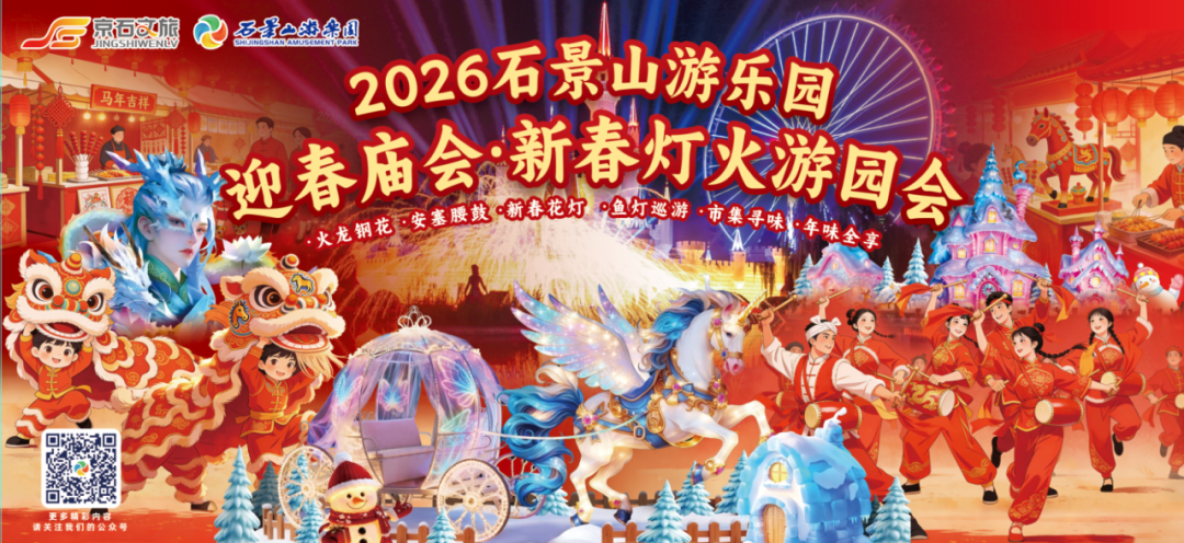 石景山游乐园迎春庙会与新春灯火游园会同步绽放,日逛庙会,夜赏花灯,双会同启氛围满满!园区内布置六大主题灯组,从神话传说到梦幻雪景,移步换景,皆为拍照打卡胜地。