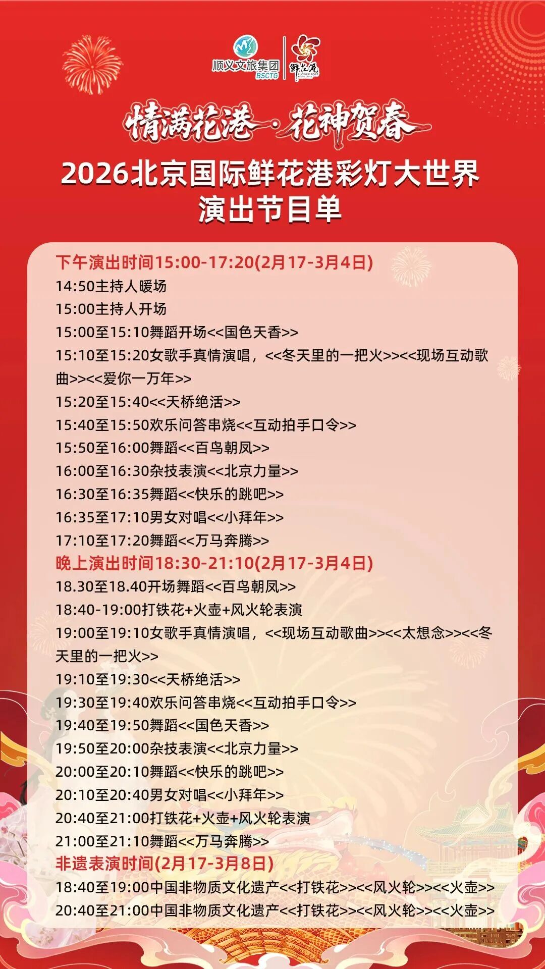“情满花港・花神贺春”第三届顺义文旅集团鲜花港彩灯大世界将于2月17日(大年初一)对外开放,本次灯展将展出超大型主题灯组10组、特色造型灯组30余组及各色彩灯8000余盏,构建起层次丰富的夜间视觉景观。