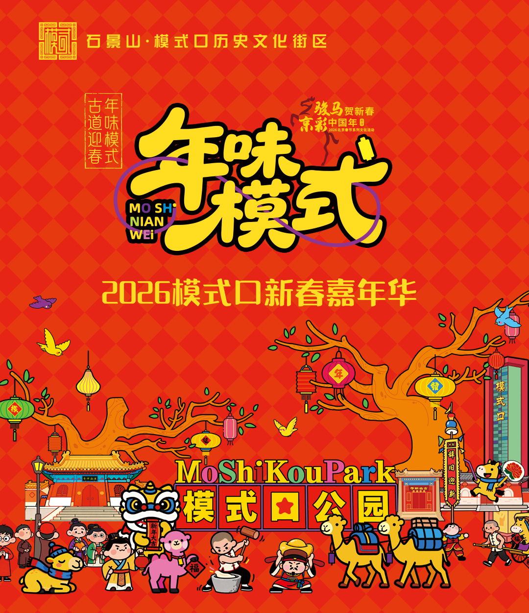 街区同步上线 “模式口年货”“模十件” 糕点、经典卤味等年味好物,一站式购置地道年货,满载新春福气,除了美妙绝伦的夜景,2月17日至2月23日、3月3日模式口历史文化街区还将推出以“骏马贺新春 京彩中国年”为主题的“年味模式”2026年模式口新春嘉年华。