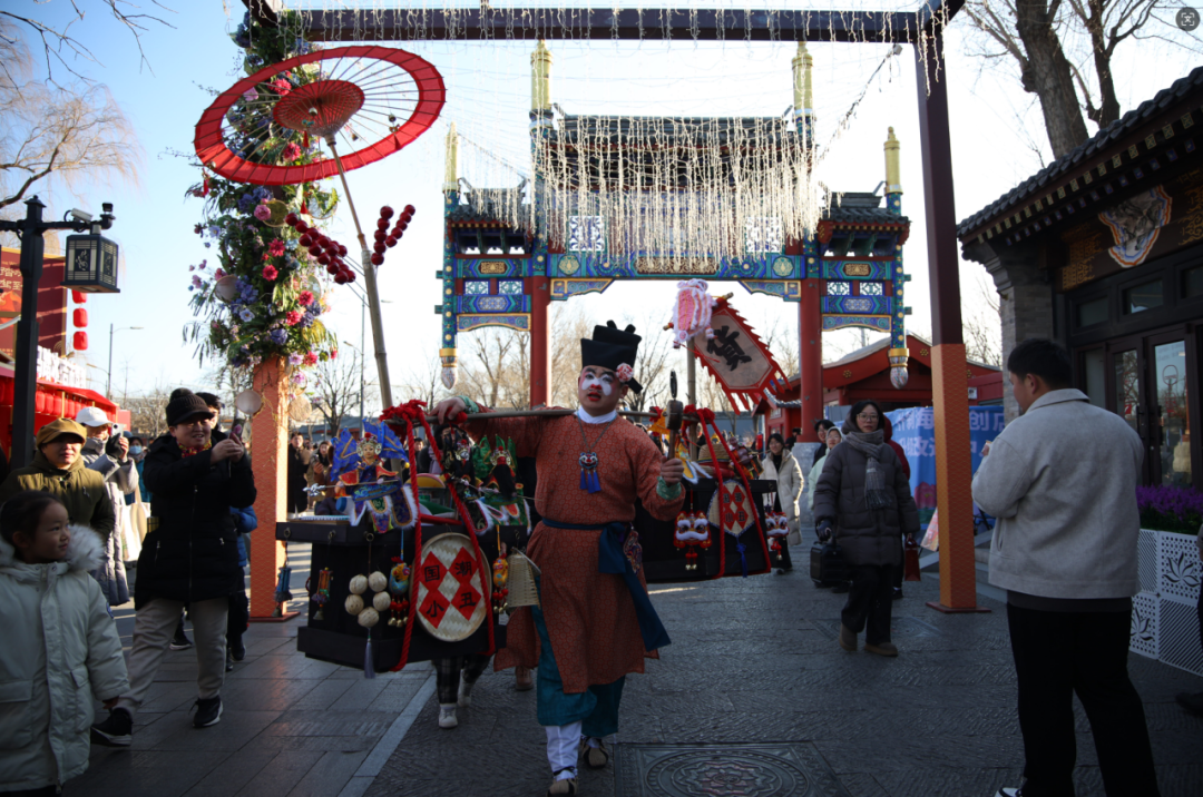 从廊房头条西口长达百米的“袖舞京华·鱼逐宫灯”光影连廊启程,《上元灯彩图》为原型复原传统宫灯造型,以7组多层宫灯为视觉核心结合祥瑞纹饰与灵动飞鱼,营造古今交融的观灯氛围。2月17日至23日,非遗年味市集将热闹开市,市集分为“国际非遗过大年”与“京味新韵迎春节”两大板块,55个特色摊位汇聚16个国家的非遗好物与特色商品以及非遗文创、老字号小吃与潮流玩物,更有皮影戏等传统年俗游戏欢乐加码,邀市民游客沉浸式感受京韵年味。