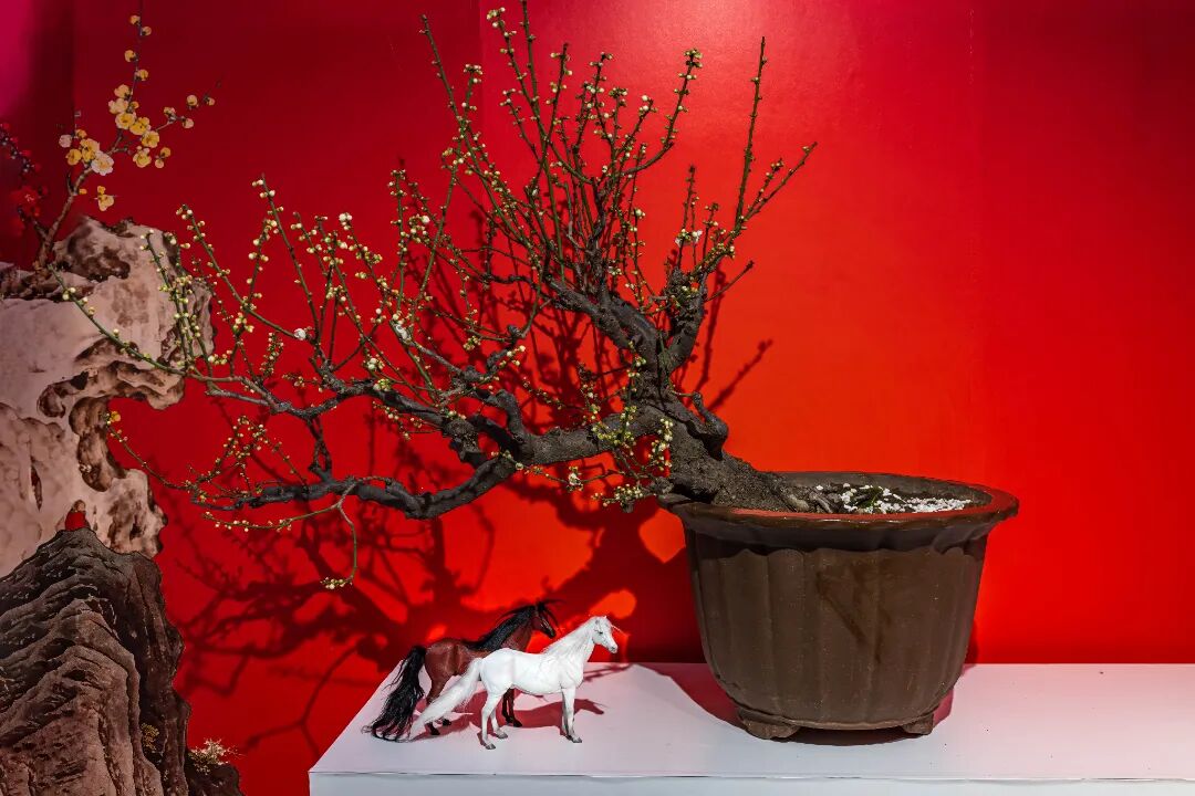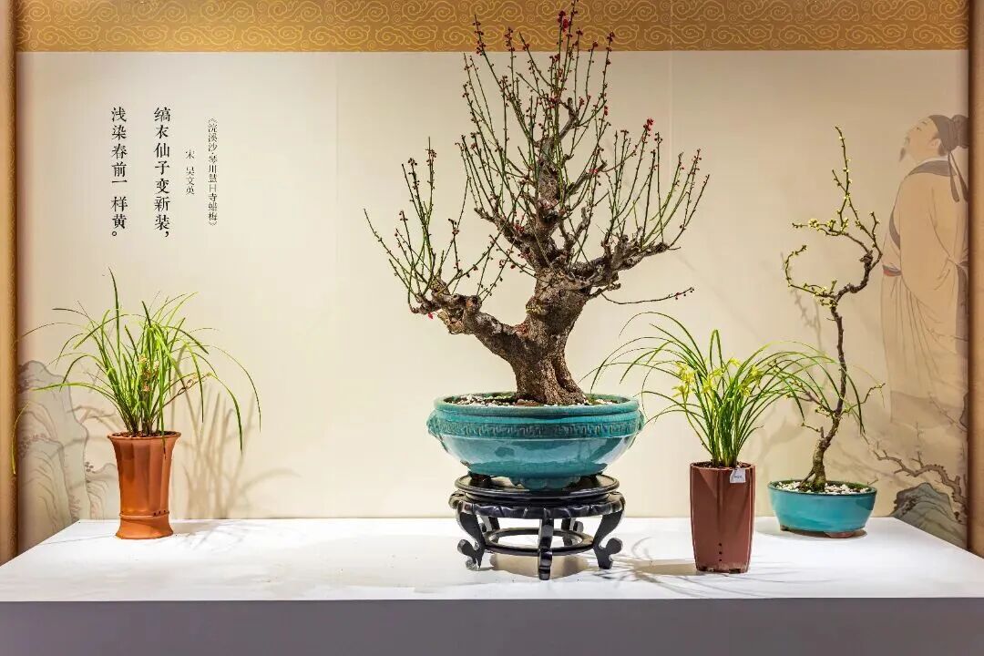 全园展览展出梅花、蜡梅盆栽百余盆