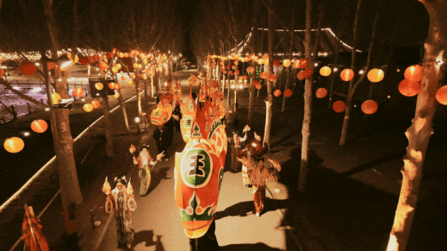 舞狮腾跃,龙灯流转