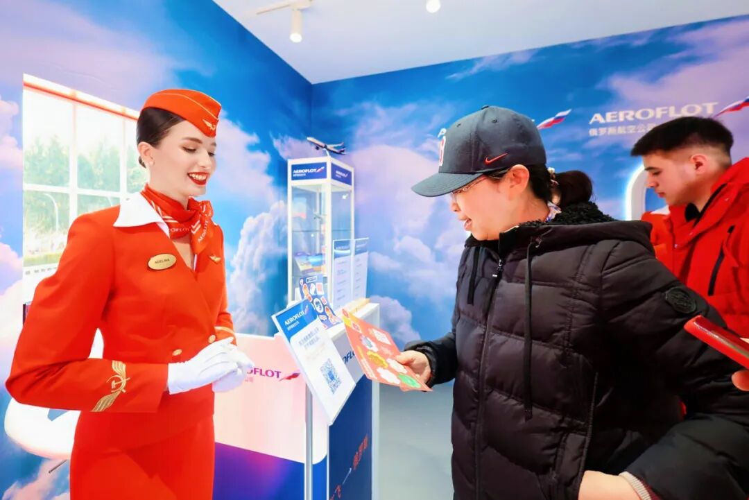 活动期间,“莫斯科”旅游推介展亭同步开放,游客可通过虚拟现实技术沉浸式漫步莫斯科街头,了解城市旅游资源。现场还设有互动抽奖环节,游客有机会赢取“莫斯科”品牌纪念品及合作平台提供的奖品。俄罗斯航空(Aeroflot)主题展区也吸引众多游客合影留念。
