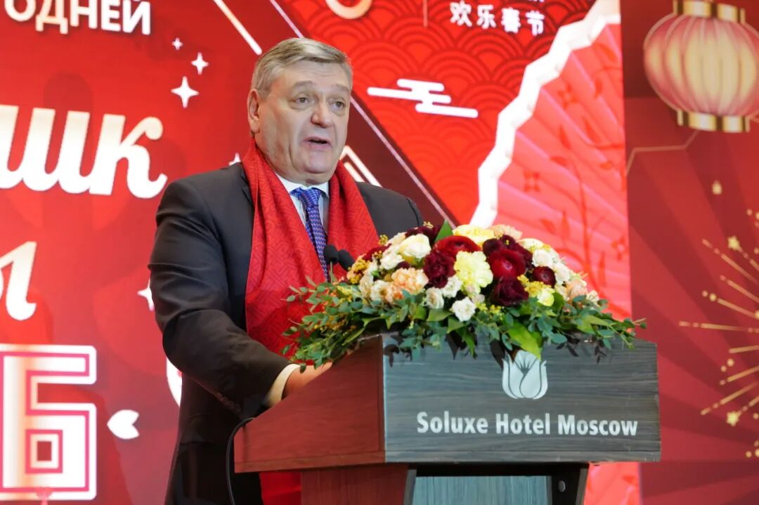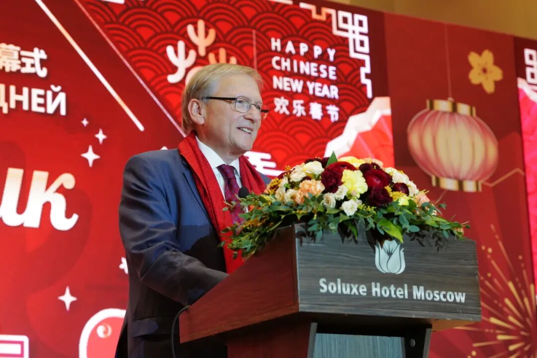当地时间2月16日下午,莫斯科中国贸易中心内张灯结彩,“欢乐春节”专场活动拉开序幕,共吸引中俄政要、各界嘉宾等约四百人出席。中国驻俄罗斯大使张汉晖、俄罗斯国家杜马第一副主席梅利尼科夫、俄罗斯外交部副部长鲁登科,以及俄罗斯总统特别代表,中俄友好、和平与发展委员会俄方主席季托夫等嘉宾出席并致辞,向所有在场观众和两国人民送上诚挚的新春祝福。