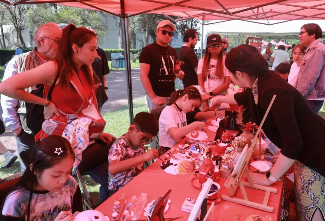 “欢乐春节”的节庆氛围从室内延伸至墨西哥国家艺术中心的广场与新春文化市集。在民乐讲座中,艺术家以“声音家庭”为喻,邀请墨西哥观众亲身体验二胡、竹笛、扬琴等中国传统乐器,在丝竹和鸣中走进东方美学的诗意世界。非遗工坊座无虚席。北京面人郎与墨西哥Alebrijes彩绘雕塑艺术进行生动对比。