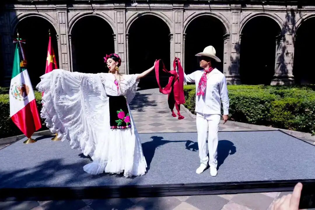舞台之上,艺术成为跨越国界的语言。中墨艺术家联袂登台,通过民乐、武术、舞蹈与声乐等多种艺术形式,生动展现了两国文化的交融与共鸣。民乐《喜洋洋》拉开欢庆序幕,琵琶与墨西哥吉他合奏的《送我一支玫瑰花》《美丽的小天使》展开弦乐对话。中墨武术爱好者同台表演《武魂》,诠释刚柔并济的武术精神。呼麦与马头琴奏响《万马奔腾》,古典舞《醉春风》尽显东方柔美。歌曲《酒歌》《相亲相爱》以旋律传递美好祝愿,将现场氛围推向高潮,生动展现中国文化的包容力与时代气息。
