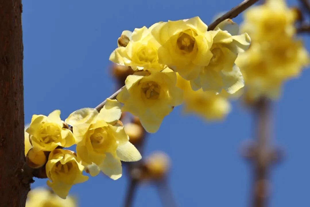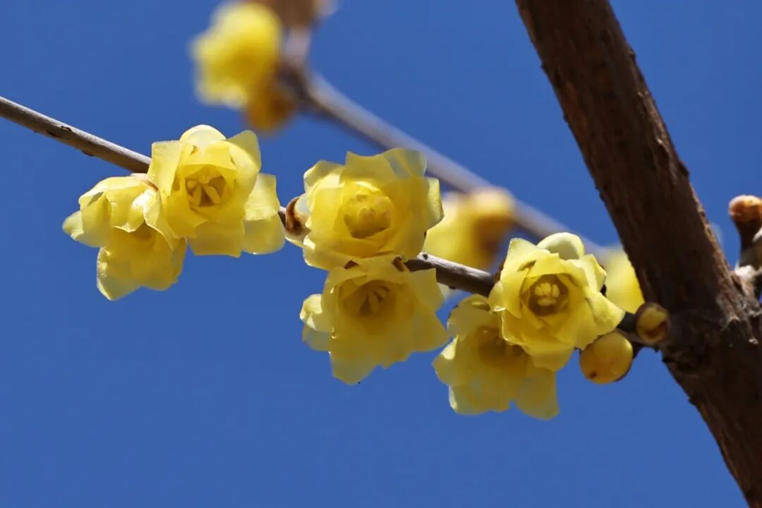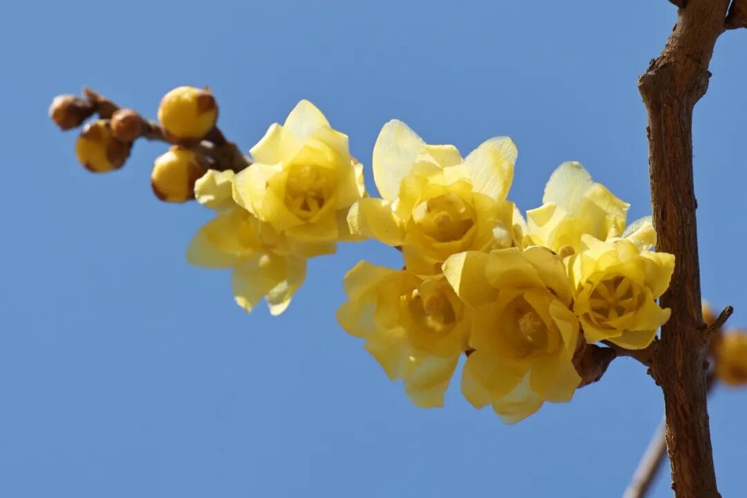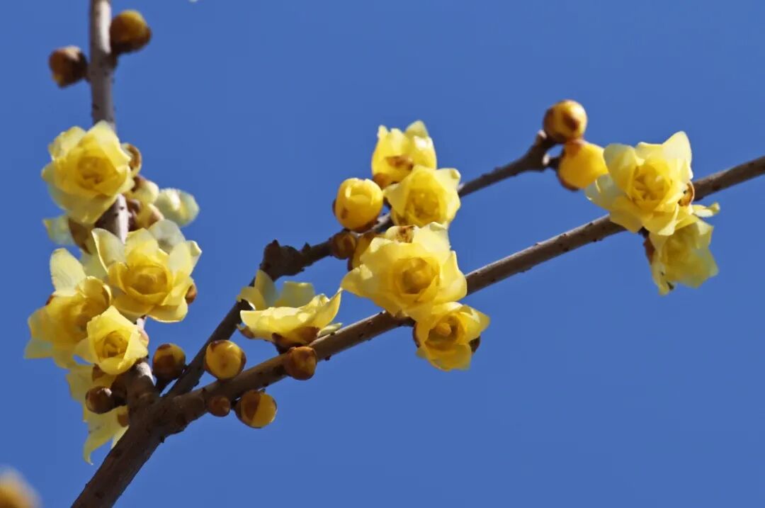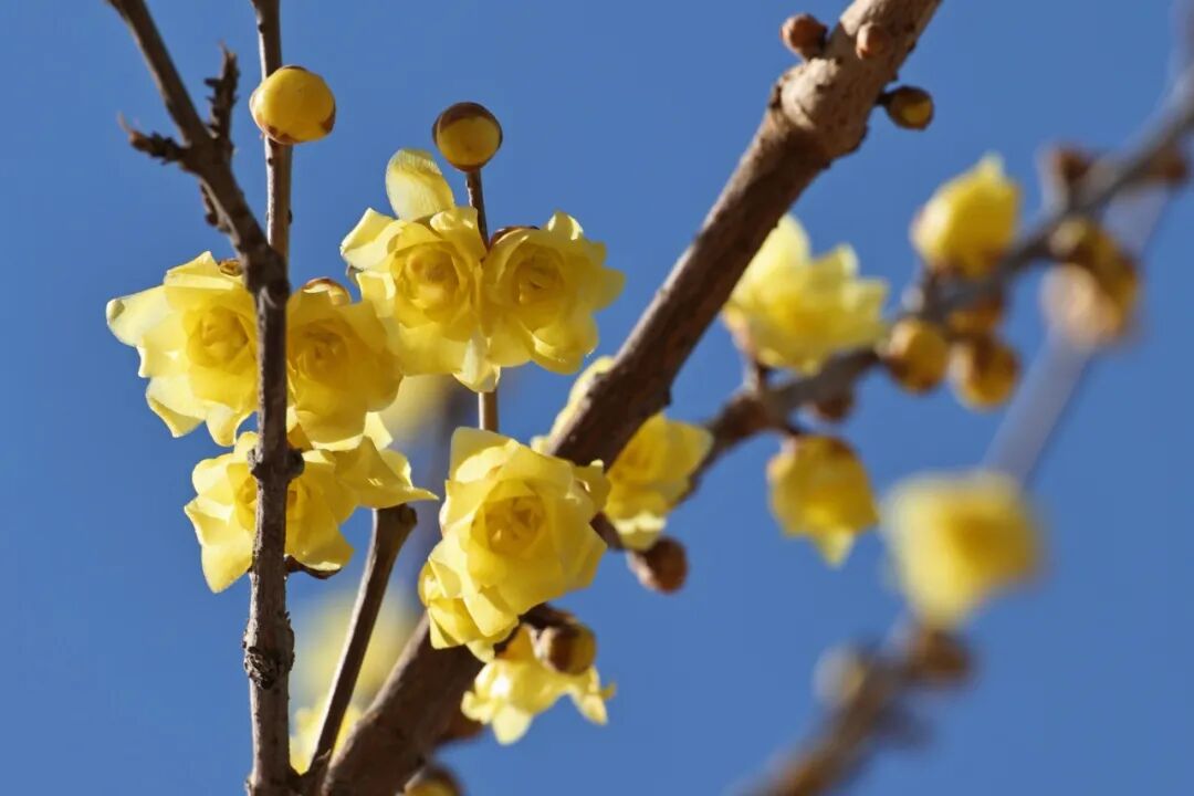 寻香而去,只见腊梅树上,缀满了星星点点的黄色花朵。它们有的含苞待放,像一颗颗圆润的金色珍珠;有的已经盛开,金黄的花瓣在阳光下熠熠生辉。