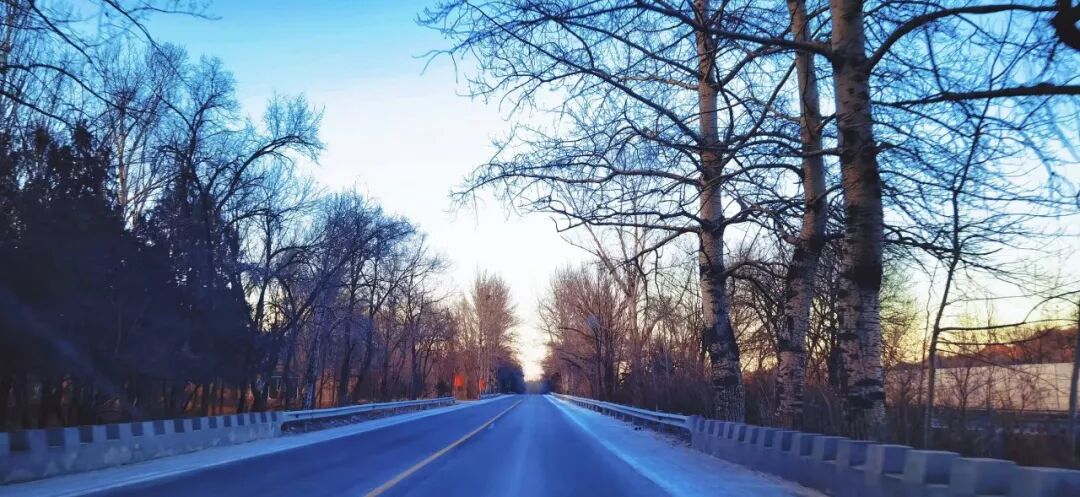 - 林间公路:两旁的白杨与枝桠交织成画,蓝调的天色与暖橙的山影相互映衬,每一次转弯都是不期而遇的惊喜。