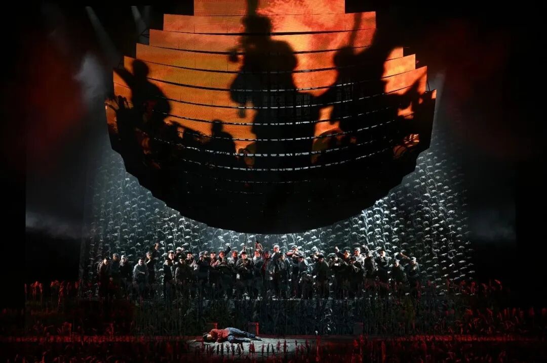 本轮《红高粱》的另一项重大“升级”在于新增一首宏大的序曲。这首序曲将叙事的视角跳脱出高密东北乡的方寸之地,以更加广阔的视野,俯瞰整个中华民族在历史风云中的英勇与血性。序曲采用ABA三段式结构,首尾两段战斗主题刻画出中华民族抵御外敌的决死之心,中部舒缓深情的段落,则抒发了对大地、对家乡、对祖国的深情热爱。