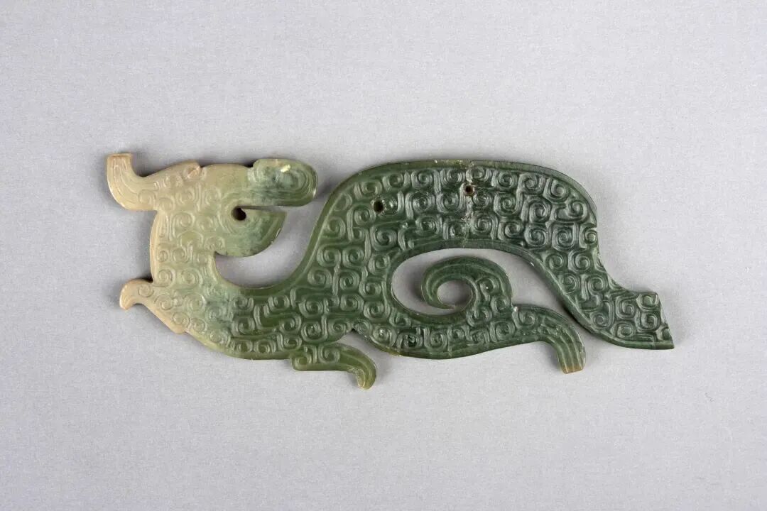 曲体回首龙形青玉佩 战国