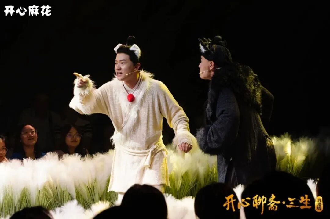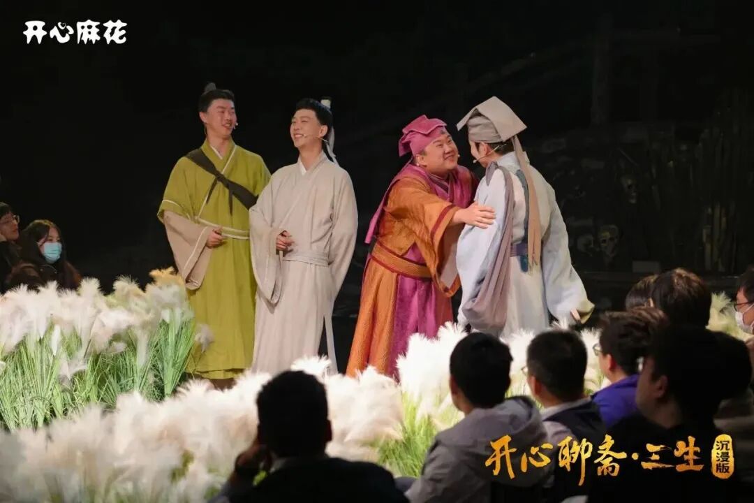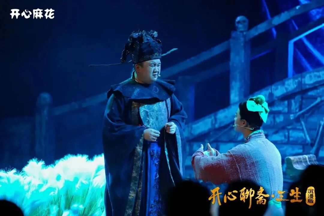 作为开心麻花的首部惊悚爆笑戏剧,《开心聊斋三生•沉浸版》多年以来一直在A33剧场驻场演出。该剧自上演以来已累计演出上千场,观众在剧中不仅能体验到主副双舞台带来的沉浸式感受,还能亲自参与到即兴互动中,成为演出的一部分。作为一部多结局的剧目,剧情的发展方向由观众来决定,每一次演出都充满了无限可能。