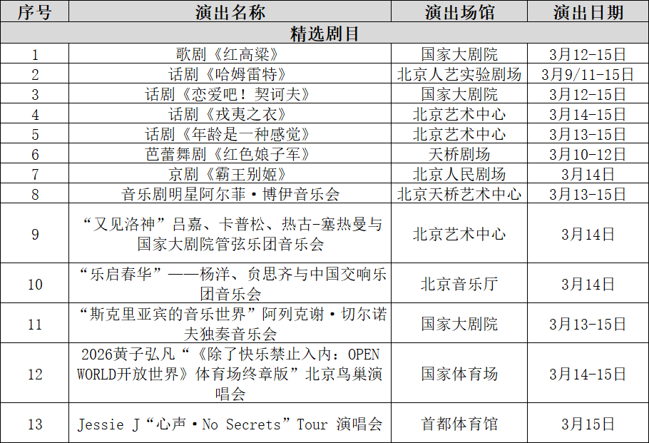 北京市一周演出预告(3月9日-15日)
