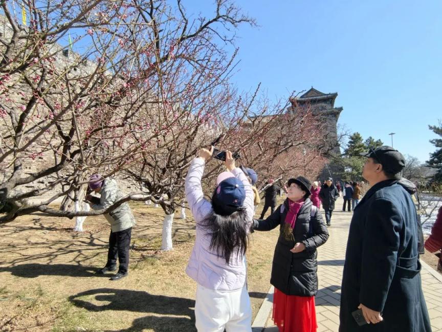 北京明城墙遗址公园负责人介绍,为方便市民游客近距离观赏梅花,园内4条赏梅栈道同步开放,让大家能够置身梅林之中,沉浸式感受梅香萦绕、暗香盈袖的美好体验。