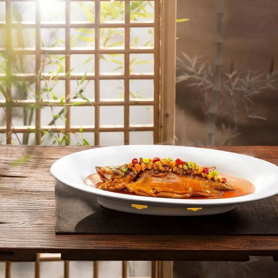 徽派建筑风格与现代设计碰撞的空间里,品尝来自安徽团队的匠心之作。家烧臭鳜鱼采用木桶发酵月余的鳜鱼,配青红椒与香菇粒烧制,鱼肉紧实咸香,汤汁都能下三碗饭!
