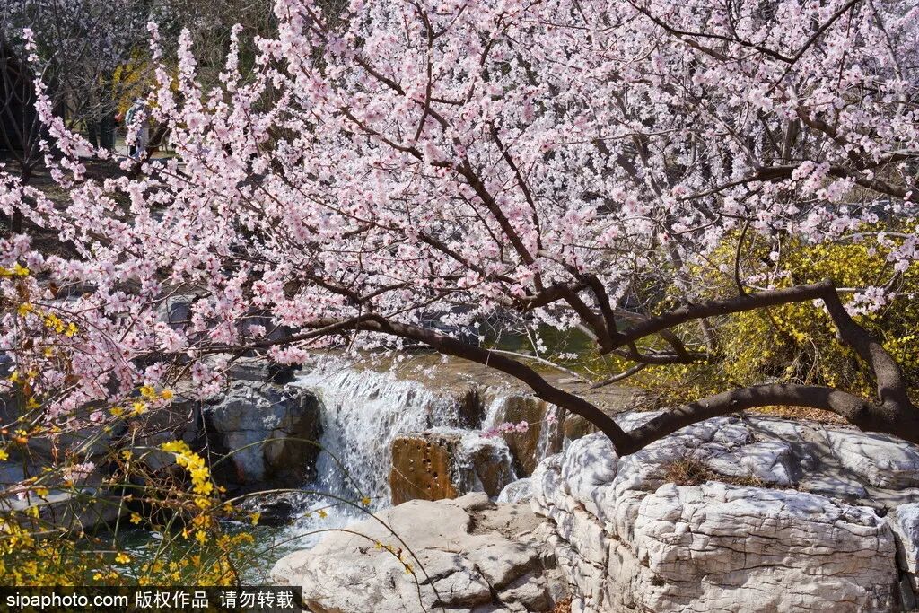 三月,北京的风里有了花的消息,国家植物园(北园)的山桃花溪畔一涧春水蜿蜒穿石,临水照花的夭夭桃枝随风轻舞。