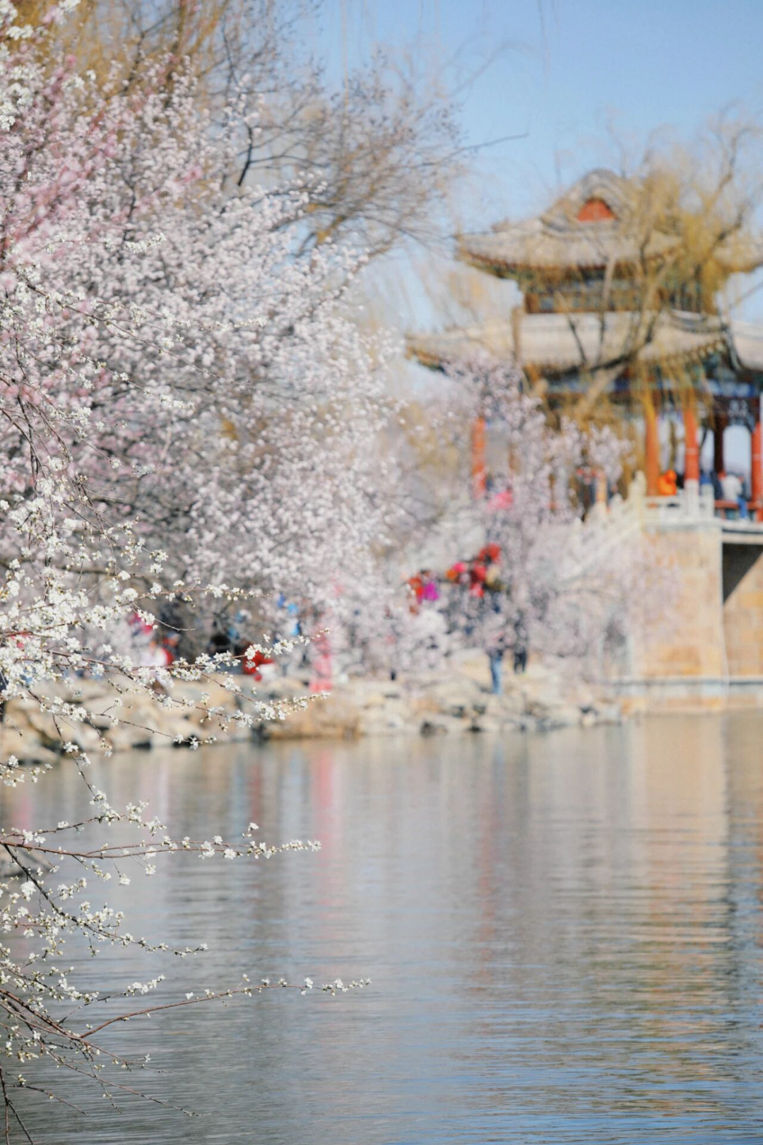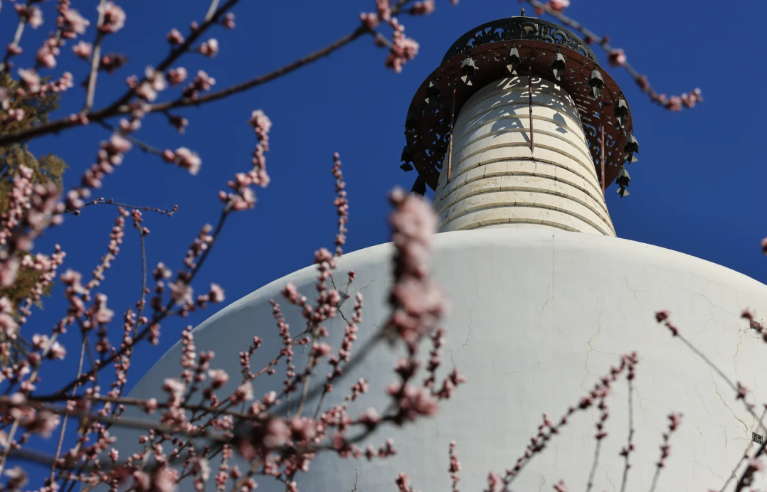 届时,登上琼华岛,远眺山顶,粉白的花海将把白塔温柔环绕。