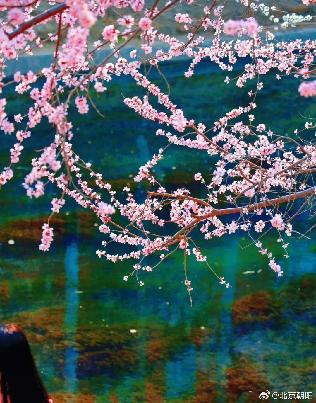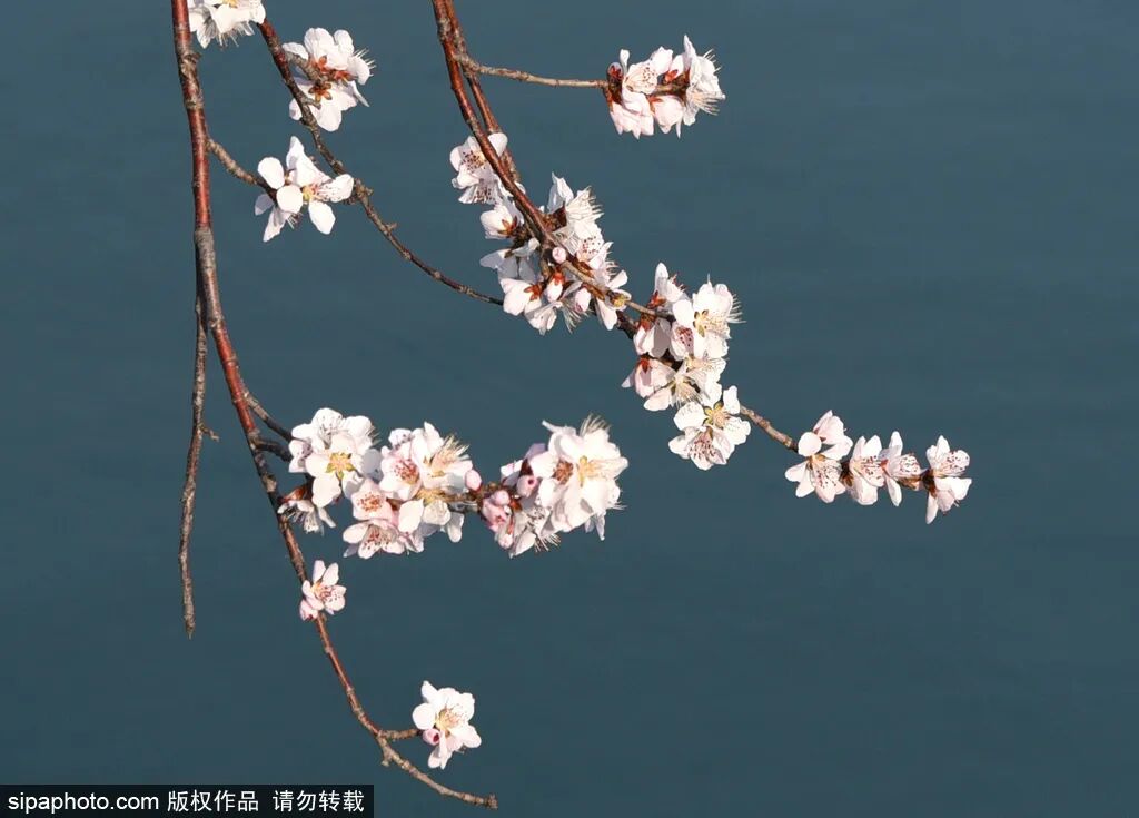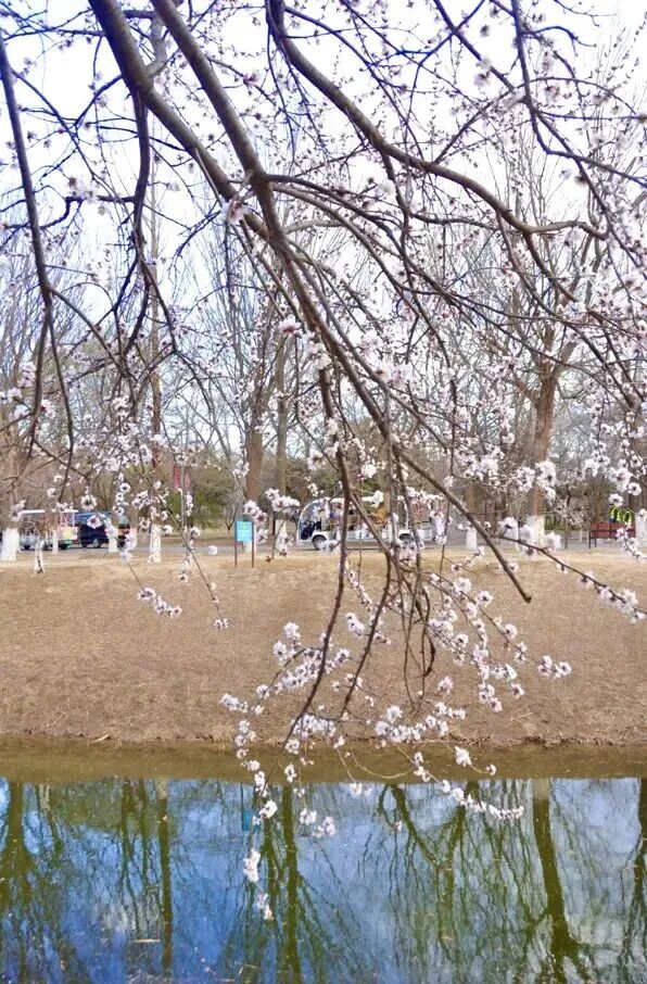 西堤春色的独一无二之处在于山桃枝条全部向着昆明湖面延伸,呈现出探水的美态。
