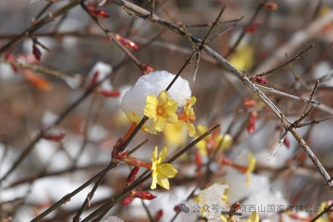 近日,北京西山国家森林公园迎春花正开得热烈,蜡梅的幽香还未散尽,山桃花已含苞待放。
