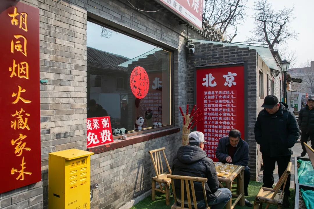 店门外的北京话宣传标识,更是成为南半截胡同的标志性打卡点。白底红字的“捯饬、套磁、扫听”等方言词直白鲜活,“您问神仙都住哪儿,胡同里边四合院儿。”的顺口溜,道尽了北京人自在豁达的胡同生活。