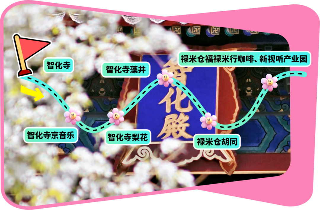智化寺→智化寺京音乐→智化寺梨花→智化寺藻井→禄米仓胡同→禄米仓福禄米行咖啡、新视听产业园