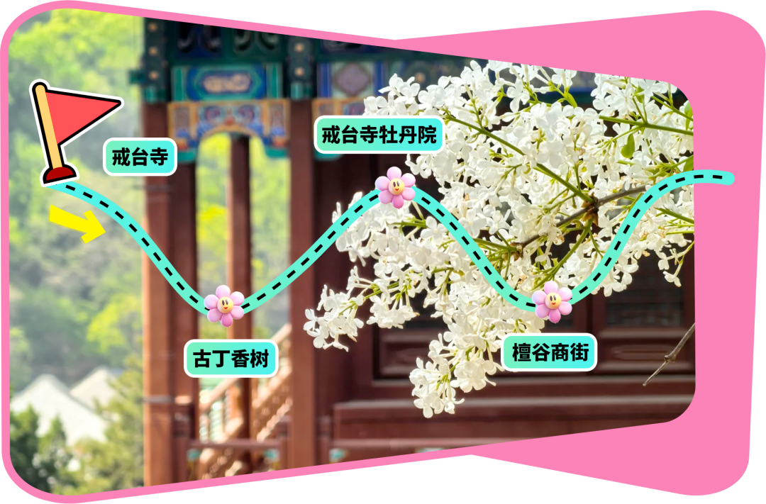 戒台寺→古丁香树→戒台寺牡丹院→檀谷商街