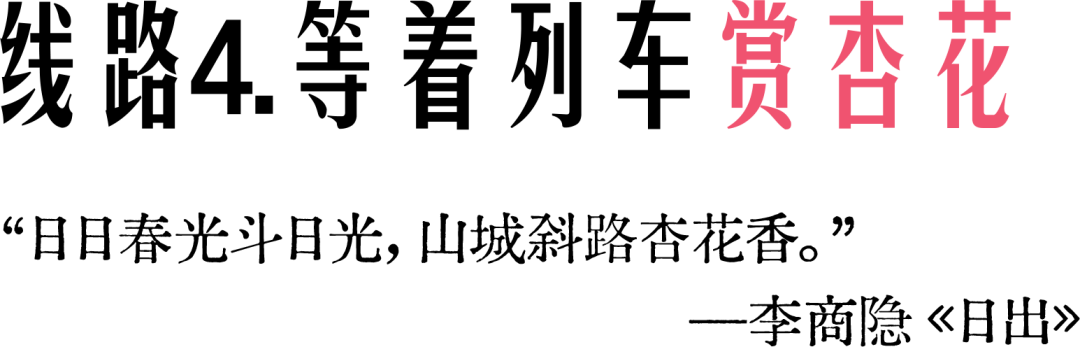 居庸关长城→观景台→等候来往春天的列车从花海而过→赏身边杏花→天下第一雄关居庸关长城→燕京八景之一的居庸叠翠