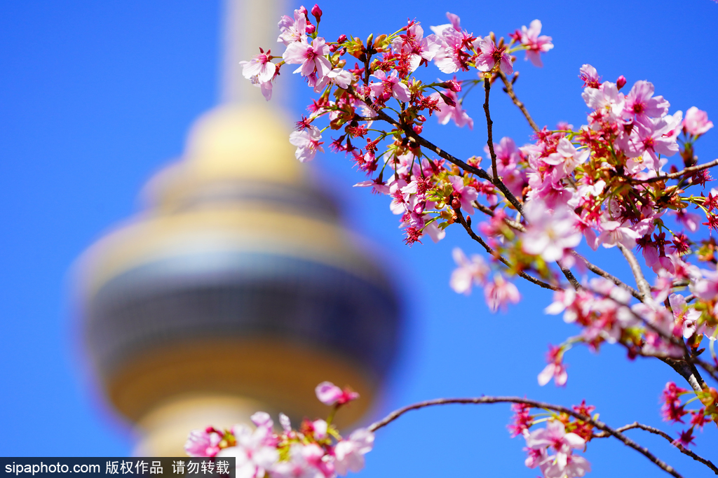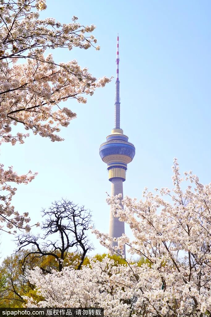 若遇上晴朗天气,当绯红的晚霞弥漫天际,粉白的花枝“簇拥”着中央电视塔,温暖的春风拂过发梢、脸颊,看着眼前这般画面想必你也会为这份春日美好而感动。