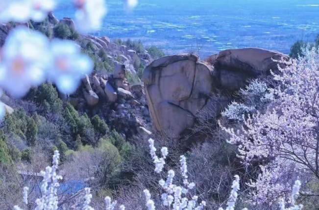 凤凰岭景区漫山的山杏竞相绽放,开出动辄百亩的盛大气势,一簇簇花朵将枯山装扮一新,满眼皆是盎然春意。