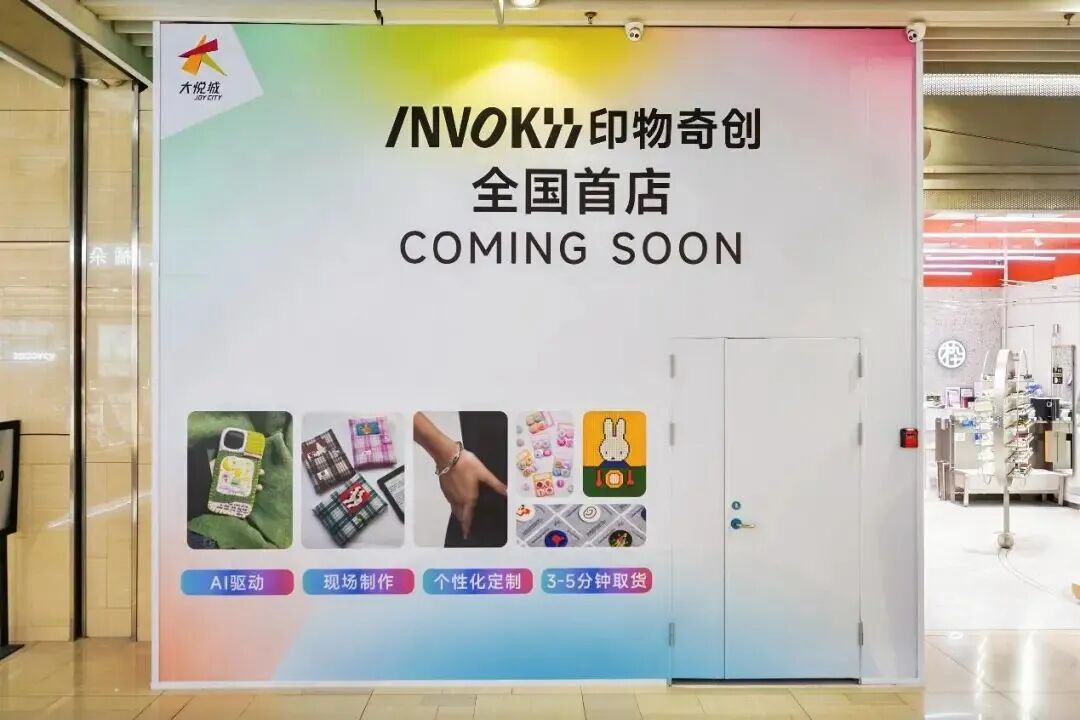 还有专为Z世代量身打造的AI创意工坊INVOKII印物奇创全国首店预计于上半年正式揭开面纱,在这里只需输入关键词AI便能生成专属设计,短短10分钟,贴纸、抽卡盲盒、定制手机壳便可新鲜出炉。