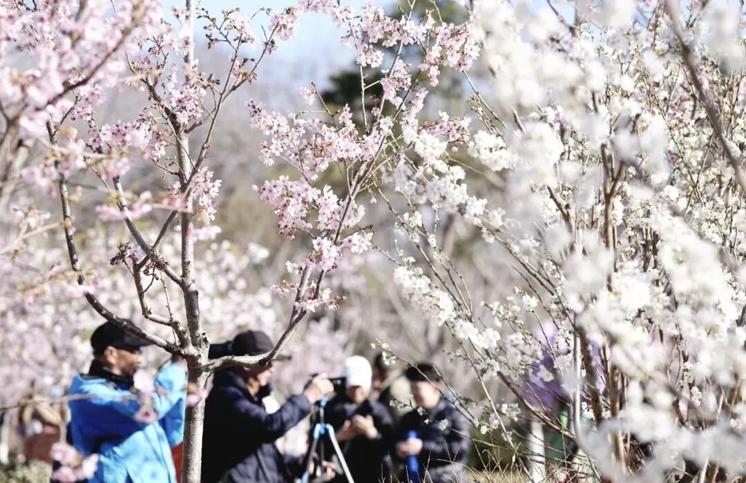 与“香妃”一同亮相的还有来自山东的自育品种“名贵红”以及难得一见的能在春秋两季开花的“奖章樱”,各种高矮、花期的樱花巧妙搭配,打造出层次感十足的缤纷花海。