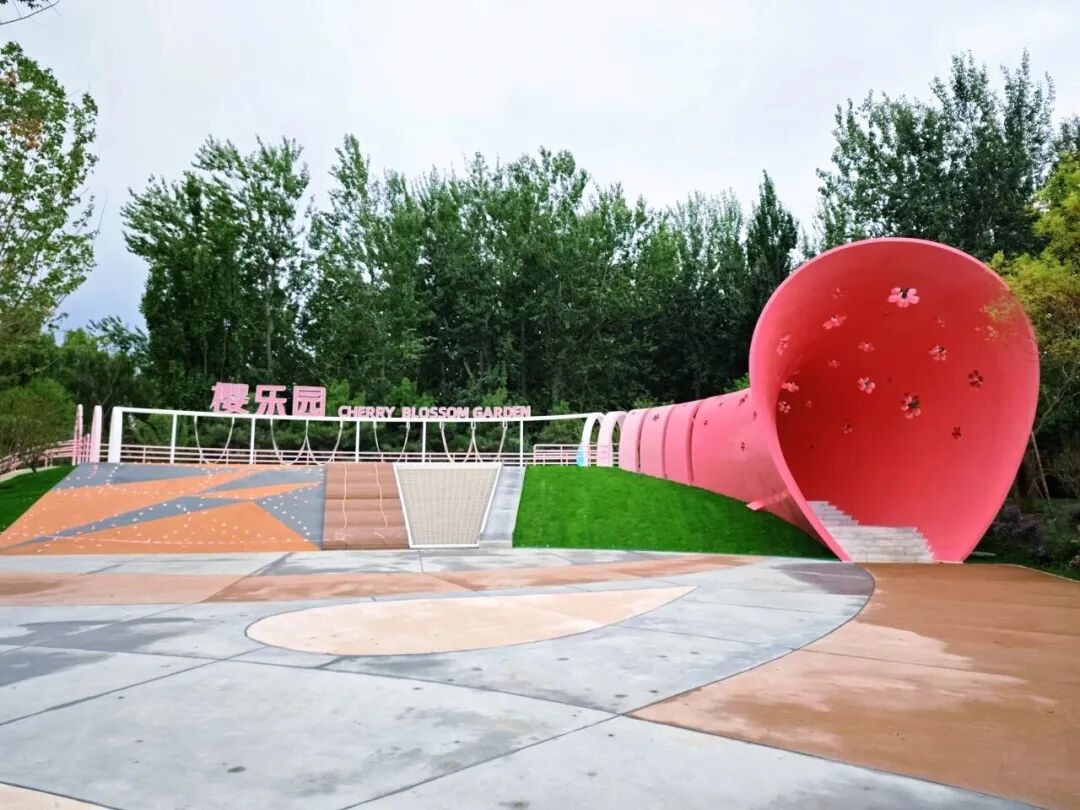 紧邻花海的樱乐园是北京首个以樱花为主题的无动力全年龄段乐园,巨大的梅粉色“樱花喇叭”不仅好看,旁边还能滑滑梯和攀岩,这个春天带着宝贝一起来游园吧。