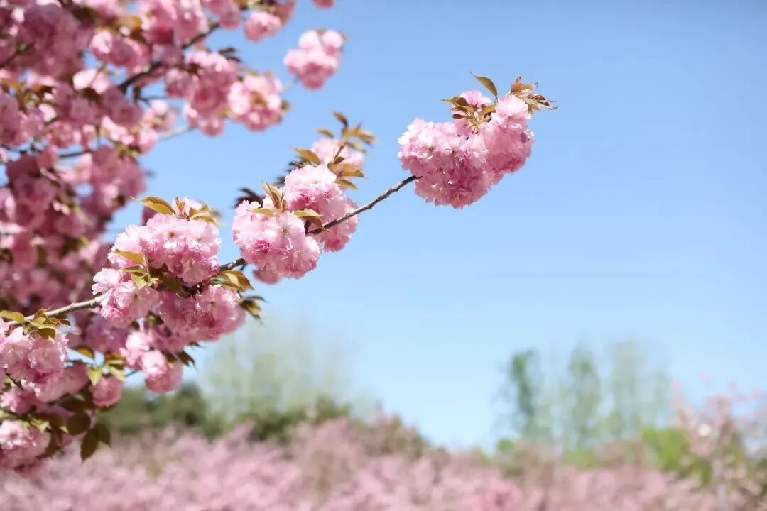 这里是朝阳隐藏的赏樱秘境,晚樱品种独特粉色白色交织,人少景美超好拍。