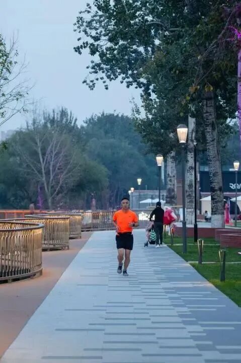 坝河滨水绿道实现颐堤港和郎园station两大商圈联通,串联将府公园、驼房营公园、滨河公园绿地,800年漕运古河变身“亮马河2.0”,打造了一个蓝绿交织的生态文化休闲空间,刷新了城市的界面。