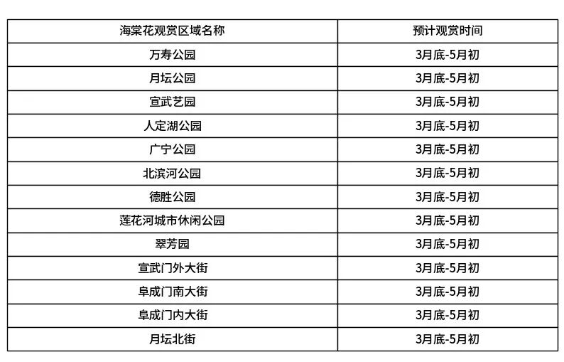 除了在陶然亭公园欣赏海棠盛景,西城区还有多处免费海棠赏花点位可供市民游客就近踏青赏春。具体点位如下图。