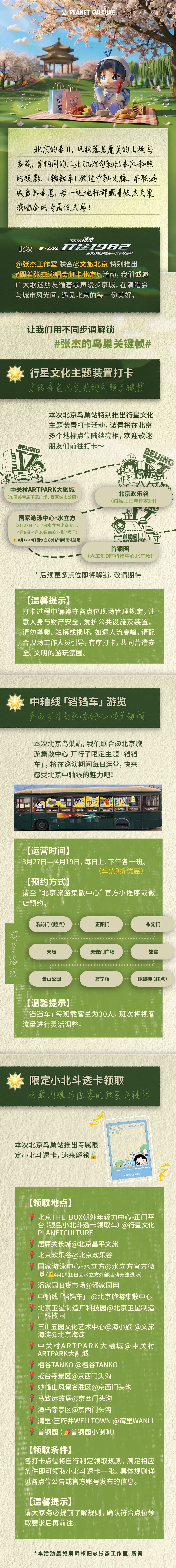 跟着演唱会去旅行,这个春天与张杰相约北京,愿这段旅程,有音乐的炽热,也有停泊的温暖,祝每一位奔赴现场的你留下难忘的春天回忆。