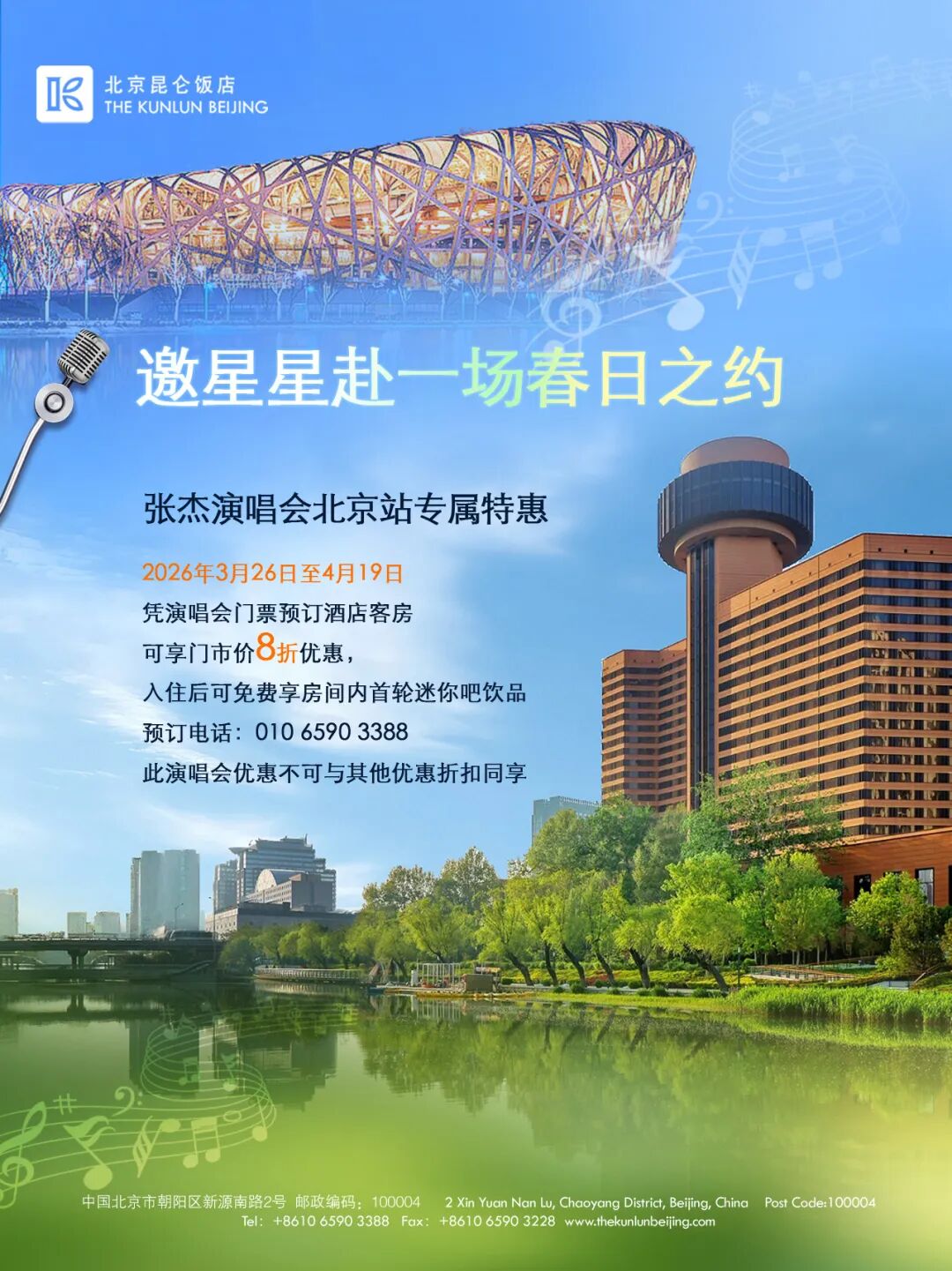 邀“星星”赴一场春日之约住进音乐里的春天,张杰「未·LIVE—开往1982」北京站 × 北京昆仑饭店专属礼遇上线。